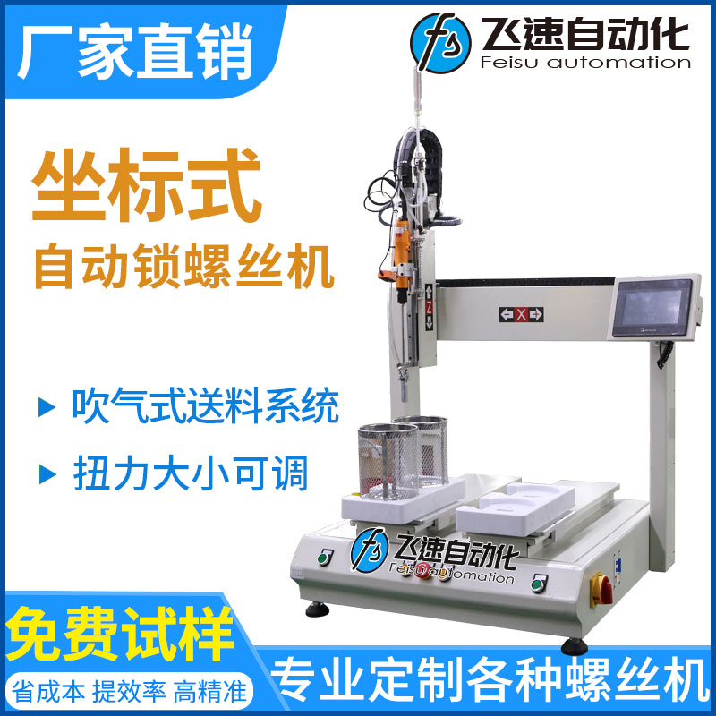 - 產品簡介: 本案例中飛速自動化為廠家提供一臺雙平臺坐標式自動鎖螺絲機,通過PLC設定坐標點位,設備根據設定好的坐標位置執行逐點鎖付任務。