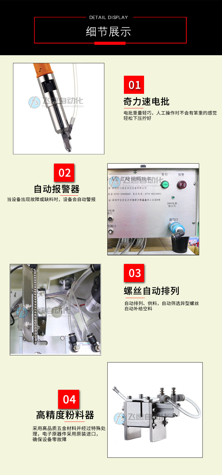 - 產品簡介: 螺絲機供料器也稱之為螺絲整列機、螺絲送料機、螺絲排列機等。當前市場上主要是日本品牌和國產品牌占據市場主導地位,價格差異較大。根據國內市場的發展和各螺絲機生產廠家技術的不斷完善,國內少部分廠家的品質完全已經達到進口產品的品質!依托其螺絲鎖付自動化的技術背景開發出垂直電批支架、螺絲鎖付控制系統,結合其螺絲排列機使用,可完全實現螺絲鎖付過程中漏鎖、浮鎖、滑牙、計數等功能,完全不同于市場上所謂計數螺絲機,可真正意義上實現上述功能!