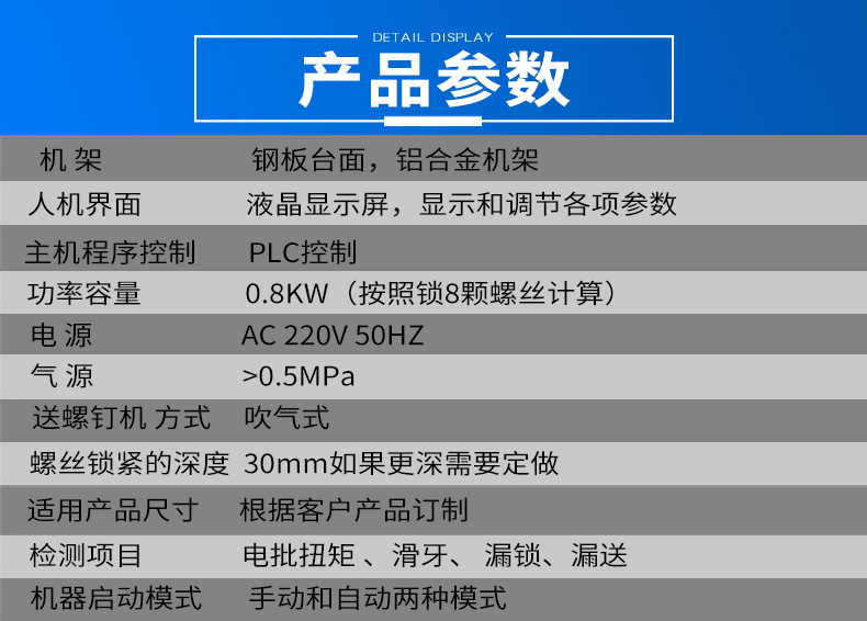 • 產(chǎn)品簡(jiǎn)介: 該款設(shè)備是用來鎖付坐墊的,坐墊上有九顆螺絲,通過該款螺絲機(jī),我們將扭力調(diào)整至一定程度,讓夾咀中的螺絲擰緊到合適位置,從而使該款坐墊達(dá)到牢固的效果。